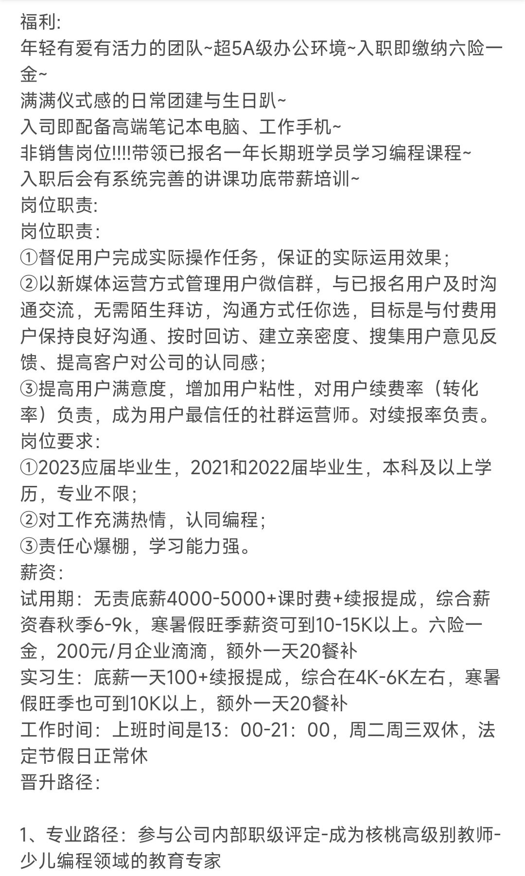 房山海博思創(chuàng)秉承“以人為本”的理念,尊重并關(guān)心每一位員工,我們倡導(dǎo)開放、協(xié)作、創(chuàng)新的工作氛圍,鼓勵員工發(fā)揮潛能,實現(xiàn)個人價值,在福利待遇方面,我們提供具有競爭力的薪資待遇、完善的社保福利、豐富的培訓(xùn)機(jī)會以及良好的晉升空間,我們還為員工提供舒適的工作環(huán)境、豐富的團(tuán)隊活動以及年度旅游等眾多福利,讓員工在工作中感受到家的溫暖。